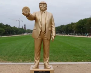చేతిలో బిట్ కాయిన్తో ట్రంప్ విగ్రహం!